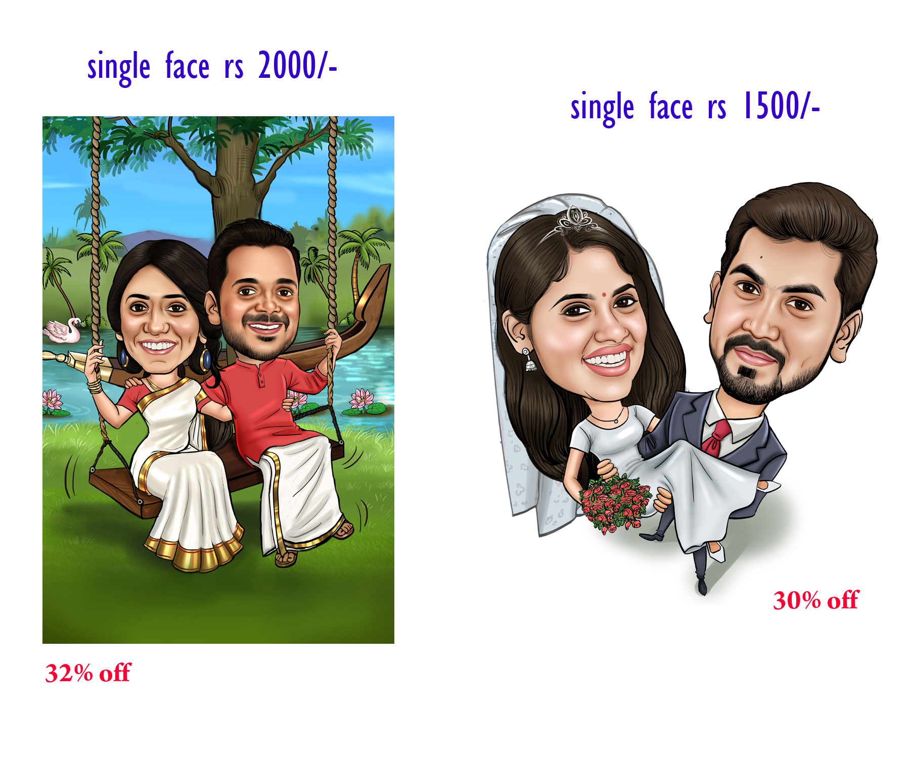 Portrait, caricature, wedding Gift, birthday Gift, Invitation.